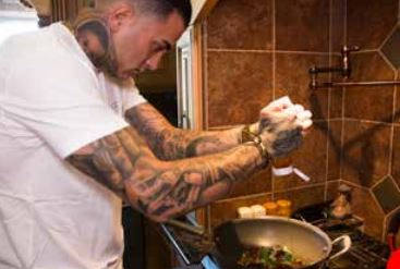 Tattoos. Once synonymous with gangsters and prison inmates, tattoos are now not only considered an art form, but a part of mainstream society, at least in the general American public. As far as the workplace goes, most professions are still asking their staff to cover up. Little by little, however, employers are beginning to not only accept but truly recognize that the ink on one’s body has nothing to do with the employee’s ability to excel at his or her work. Tattoos are becoming more and more accepted within all sorts of fields, especially in the kitchen. Tatted chefs are being recognized for their skills rather than judged for the ink on their skin, proving that there is more than meets the eye to these inked culinary masters, and Grandmaster Chef Jojo is one of them. Jojo is the embodiment of a self taught countercultural professional, getting the chance to live the dream.